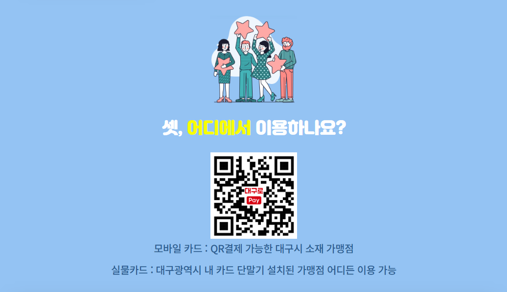 - 사용 가능처: 대구 지역 내 연 매출 30억 원 이하 가맹점 및 대구로 앱