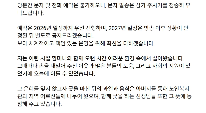 문자 및 전화에 개별 응대가 어려운 상황이라고 전했습니다.